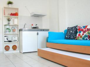 Όλα τα στούντιο και τα δωμάτια είναι κλιματιζόμενα με θέα στη γύρω περιοχή. Τα studio και τα δωμάτια διαθέτουν μίνι ψυγείο, τηλεόραση, θυρίδα ασφαλείας, ηλεκτρικό βραστήρα, καφετιέρα, και στεγνωτήρα μαλλιών. Τα studio διαθέτουν εκτός των ανωτέρω και κουζίνα με τα απαραίτητα σκεύη.