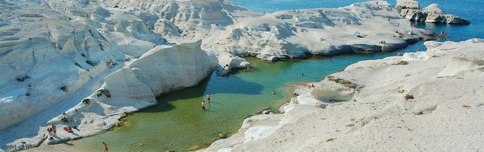 Located in the Northern coast of Milos, this is the most well-known beach of the island. Its distinctive landscape of white rocks creates the illusion of a lunar landscape. The place is ideal for those who love diving. The beach is not organized so it is useful to equip oneself with the necessities.
