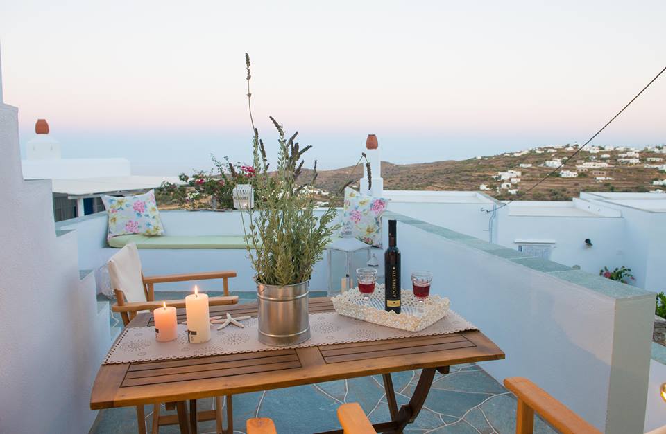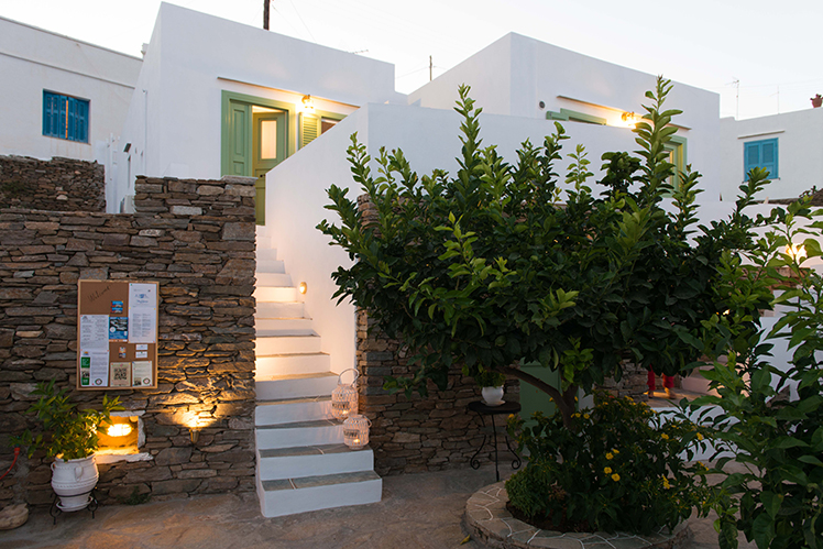 Εδώ, στο Πάνω Πετάλι θα βρείτε τα στούντιος Μόσχα Γεροντή σε μία πραγματικά ιδιαίτερη θέση, που μπροστά τους απλώνεται το Αιγαίο και ο οικισμός Κάτω Πετάλι.